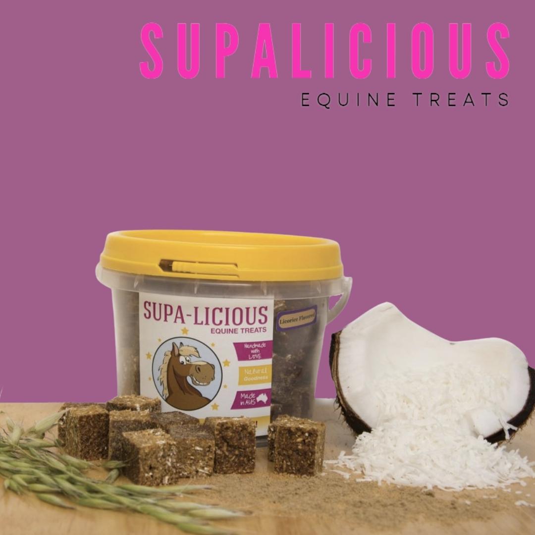 Handmade and natural, Supa-licious Treats are the perfect blend of tasty goodness for your equine companion.